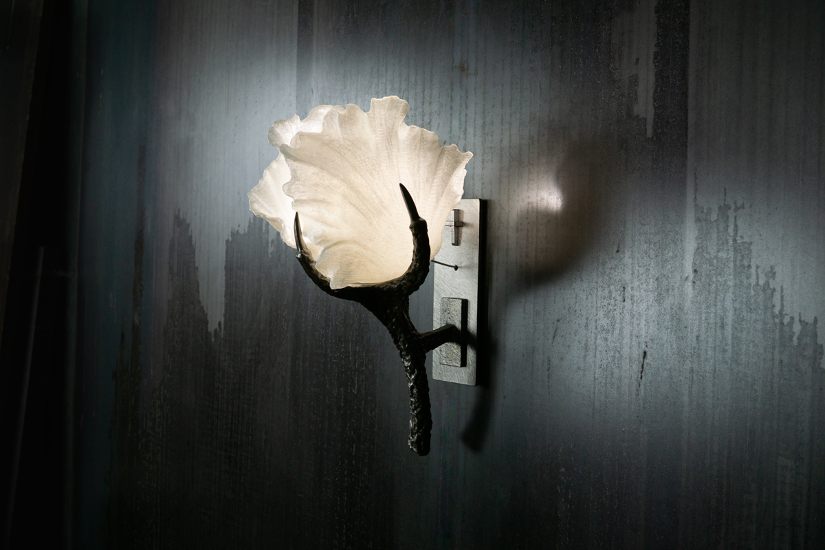 Le métal en fusion qui s'écoule et s'étale comme une coulée de lave, le moule se brise. Des serres apparaissent, fortes, prêtent à maintenir, à enlacer, à protéger.